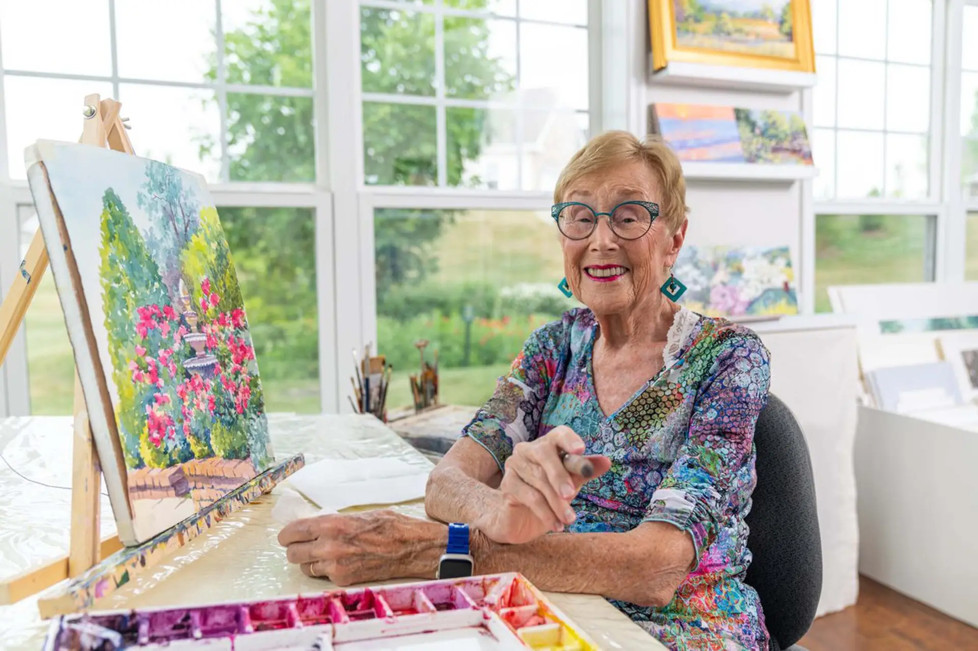 Margaret Huddy is a painter and writer, having illustrated and authored the book “State Flowers” and many articles for art magazines. Her work is in private and public collections nationally and abroad. Whenever she travels, she carries a small backpack with a travel size watercolor kit to record the landscape wherever she goes.