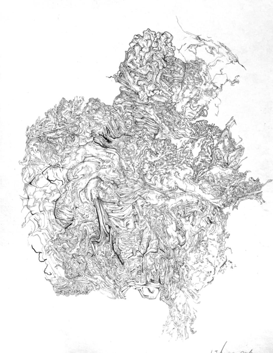 She was a lion. She was bold. It was a shock when she opted out of life. Unbeknownst to me, her death prefaced the unfolding of my personal life weeks after this drawing was produced. Her Native American end of life ceremony forbade saying her name for one year. She could only be referred to as ‘Coyote Girl.’ In the midst of agonizing grief of her loss, I felt her guide my hand.