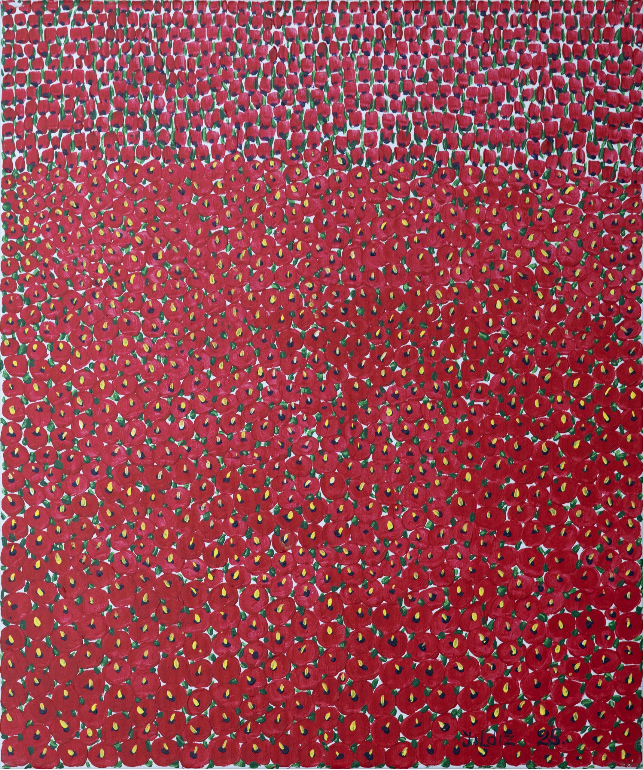 To me, red symbolizes energy. The flowers across the red it is the celebration of vitality.